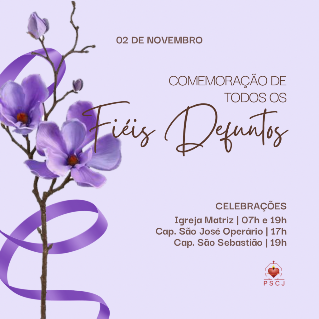No dia 02 de novembro, comemoramos todos os fiéis defuntos. Nossas celebrações serão nos seguintes horários: Envie as intenções com