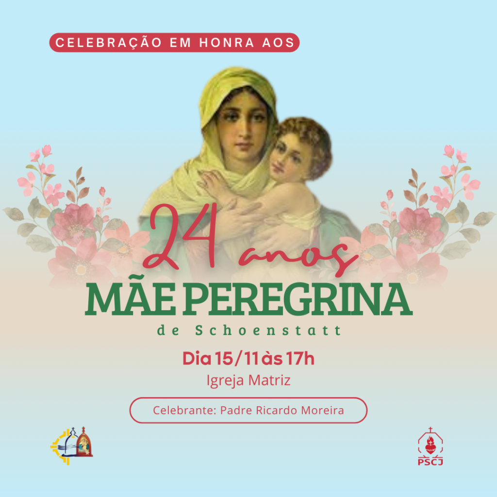 O Movimento Mãe Peregrina convida toda a Comunidade para a Celebração alusiva aos 24 anos de sua existência. A celebração