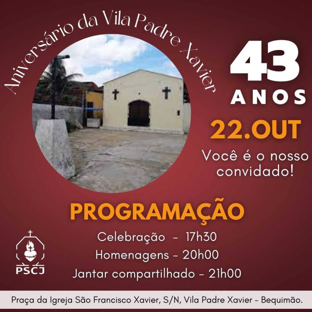 A Capela São Francisco Xavier comemora neste domingo (22), seus 43 anos de formação.A Celebração será iniciada às 17h30 e