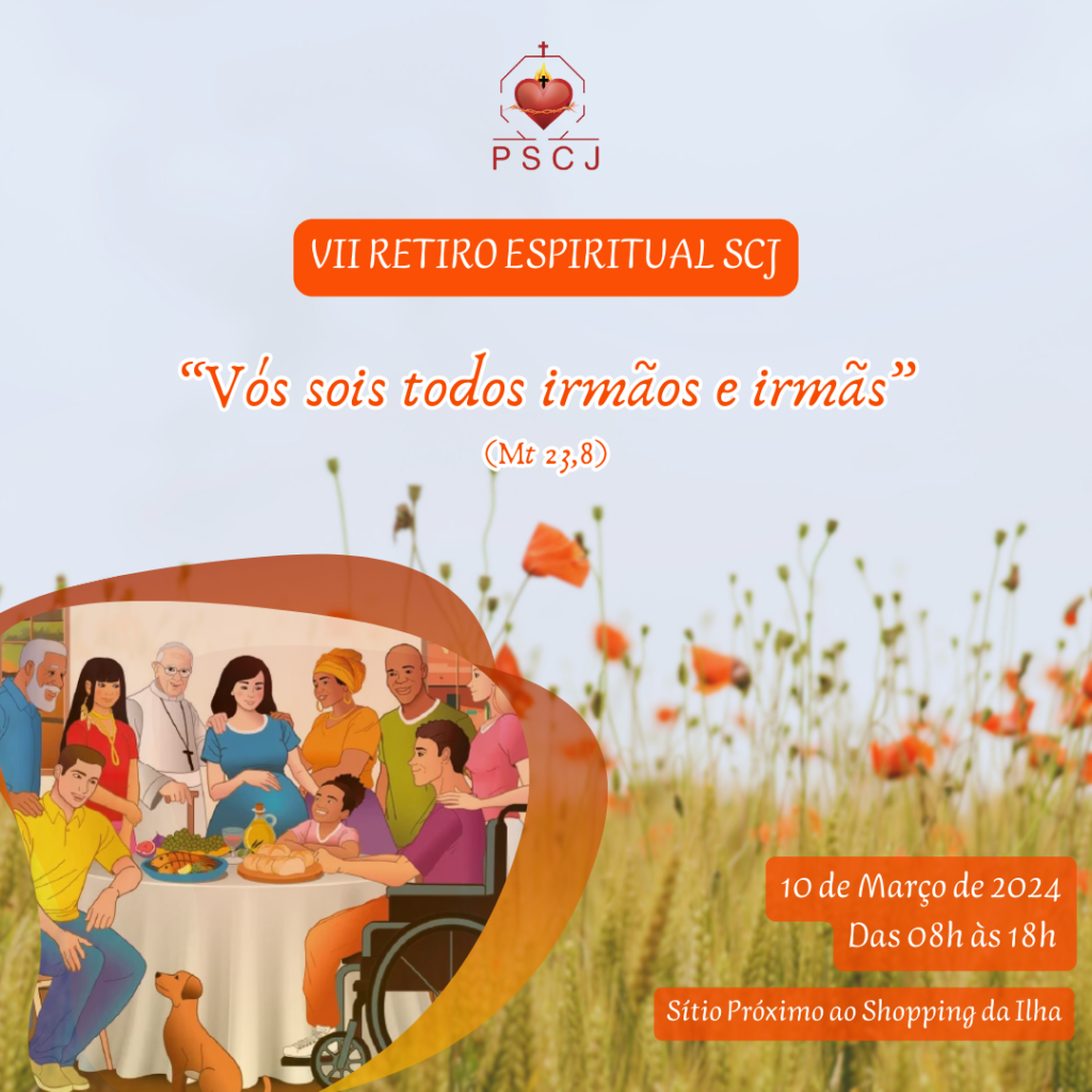 Vem aí o VII RETIRO ESPIRITUAL SCJ 2024, com o tema: “Vós sois todos irmãos e irmãs” (Mt 23,8), no